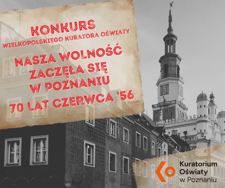 Wielkopolski Kurator Oświaty organizuje Konkurs „Nasza wolność zaczęła się w Poznaniu – 70 lat Czerwca ’56”. Konkurs skierowany jest do uczniów klas IV – VIII szkół podstawowych, a także ponadpodstawowych z terenu Wielkopolski.